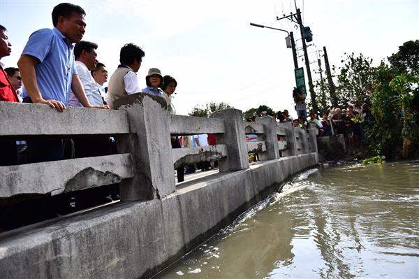 總統視察美濃天后宮堤防受損、美濃溪整治進度、旗山溪州農損、岡山典寶溪A、B滯洪池及白米橋淹水情況