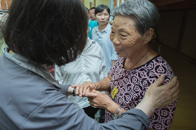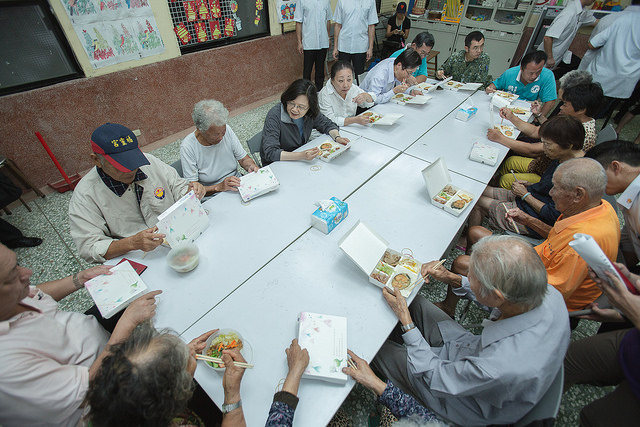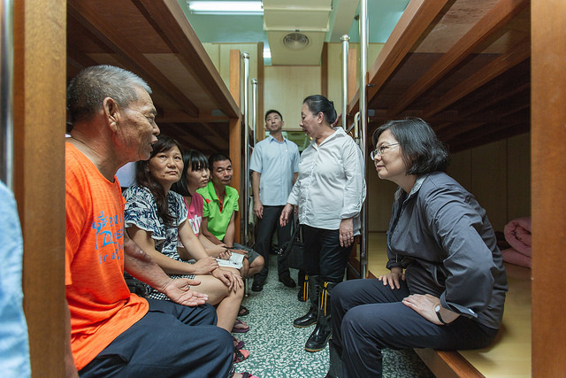 總統前往東石三塊厝福靈宮收容所探視災民並一同用餐
