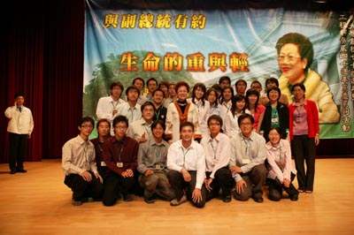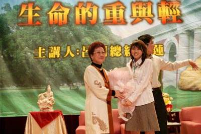 副總統期勉所有學子們,在學習之外,一定要好好思索台灣的未來,台灣的民主成就是大家犧牲奮鬥所獲得,大家必須努力維繫並加以發揚光大。副總統表示,我們堅持的是公理與法治,法律之前人人平等,而法治立國更是大家努力的目標與宗旨。她語重心長地告訴所有學子們,台灣的前途掌握在大家手裏,每一個人應該對台灣的前途付出更多的關懷,因為個人生命的輕與重取決於國家生命的輕與重,她期許大家一定要具有三心─良心、愛心與信心,說良心話,愛台灣的心,並對台灣有信心,作為自己的主人,更作台灣的主人,台灣的前途一定充滿光明與希望。
