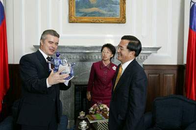 陳總統水扁先生今天下午接見俄羅斯國會友台小組訪台團主席瓦潛科(VICTOR P. VOYTENKO)議員一行,針對如何提升雙方實質關係與訪賓廣泛交換意見。