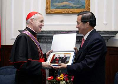 總統則表示,陶然樞機主教在擔任教廷外長十多年間,多次向我方前往教廷的訪賓表示,台灣社會充滿活力,享有充分宗教自由,並長期援助中南美洲與非洲等貧窮國家,符合天主教教義,對於台灣的貢獻,教廷給予高度肯定,並多次強調台灣是中國教會與梵諦岡的橋樑,透國台灣,中國天主教會可以瞭解到梵諦岡教會並未遺棄他們,總統對此表達感佩之意。