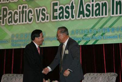 本人非常榮幸能夠接受「太平洋經濟合作理事會中華民國委員會」的邀請,參加由該會與外交部共同舉辦的「第二十屆太平洋經濟共同體研討會」。「太平洋經濟合作理事會」(PECC)是由太平洋周邊國家的產、官、學界菁英所組成,是融合「第一軌道」與「第二軌道」的區域性國際組織,藉由會員國之間的經濟合作,達成區域整合的最終目的。本人謹代表中華民國(台灣)政府與台灣人民向貴會長期的努力和貢獻,表達最崇高的敬意。