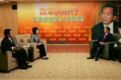 陳總統水扁先生今天接受東森電視訪問,答問內容全文如下: