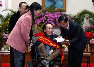 各位得獎人把生命活得精采又有意義,然而各位所經歷的困難及苦痛,不是一般人可以輕易理解的,也正因各位生命中的挑戰比別人更多、更困難,所以大家的成就也更加可貴。阿扁也要深摯祝福各位得獎人的家人及朋友,一路走來,家人及朋友真的付出很多愛心與耐心,相信各位得獎人也非常珍惜家人和朋友的鼓勵與支持。