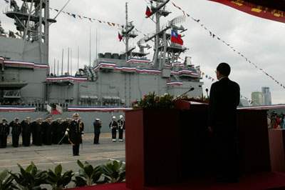 今天是中華民國國軍最光榮的一天,也是中華民國海軍史上最重要的一刻!上個月下旬,海軍最後一艘陽字號「瀋陽軍艦」除役,今天阿扁以中華民國三軍統帥的身分來到基隆,親自主持「基隆、蘇澳軍艦」成軍典禮,與所有國軍官兵弟兄以及全體國人同胞共同見證「基隆」、「蘇澳」兩艘紀德級新軍艦加入海軍戰鬥行列,開啟海軍傳承捍衛海疆安全使命的新頁。