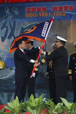 陳總統水扁先生今天上午主持海軍「基隆」、「蘇澳」軍艦成軍典禮,與所有國軍官兵弟兄以及全體國人同胞共同見證「基隆」、「蘇澳」兩艘紀德級新軍艦加入海軍戰鬥行列,開啟海軍傳承捍衛海疆安全使命的新頁。