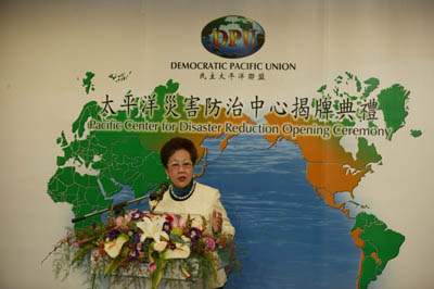 副總統表示,「民主太平洋聯盟」自今年8月14日正式成立以來,即認為應共同維護太平洋永續發展,而台灣能與聯盟會員國分享的不是金錢,而是寶貴的經驗,例如福衛二號在太空所拍攝而得的各幀寶貴照片以及實驗研究院的重要研究成果,都可與世界各國分享。副總統並特別感謝陳總統親自蒞臨與會,表示總統的重視與肯定,令她甚感榮幸,此外,她也感謝國家實驗研究院的支持與協助,讓以台灣為主導的太平洋防災中心能順利於南亞海嘯週年後今天正式成立,更希望外交部能以台灣寶貴的防災、避災經驗作為重要的外交資源,與全世界共同交流,則將會是世界的福音。