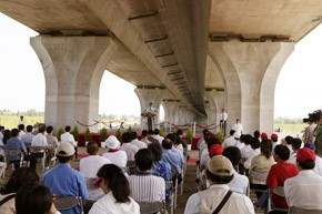 陳總統水扁先生今天上午前往屏東縣視察二高屏東段建設情形,除聽取國道工程局鄭文隆簡報相關工程計畫及進度外,並在蘇嘉全縣長等人的陪同下,實地視察工程建設成果。也在簡報後應邀致詞。