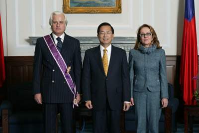 陳總統水扁先生今天上午代表中華民國政府與人民頒授「紫色大綬景星勳章」給義大利國會友臺小組主席藍帝(Gian Paolo Landi Di Chiavenna)眾議員,以表彰他多年來致力提升臺灣與義大利兩國邦誼以及致力加強雙邊友好合作關係的卓越貢獻。