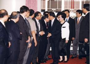 陳總統水扁先生今天上午偕同呂副總統秀蓮女士,應邀參加紀念孔子誕辰暨慶祝中華民國九十一年教師節表揚資深優良教師大會,總統除在大會中致詞外,並與與會人員合影留念和餐敘,以表達對教師們的敬意和感謝之意。