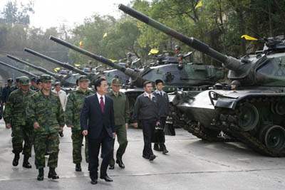 同時,面對中國一再的「文攻武迫」,反觀政府所推動的「三項重大軍購」預算雖經調整,迄今仍然受制於部分在野黨非理性的杯葛,不僅軍購特別預算無法付委審查,縱使改列年度預算也被全數刪除,阿扁仍然要堅定地重申政府積極建構自我防衛能力的決心與立場絕不改變,同時再次懇切呼籲立法院不分朝野立法委員先進儘快讓軍購預算在下個會期付委及通過。阿扁也堅信,全體國軍弟兄都是政府最好的後盾,更是國家安全的守護神。