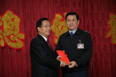 再過幾天就是農曆春節,也是闔家團圓的時刻。過年期間還有一些官兵弟兄要擔負起戰備留守的責任,而國人能夠平安歡度春節,就是因為有大家的犠牲與奉獻。阿扁要請李部長、李總長和國防部各位幹部同仁具體落實「三安政策」,因為每一位官兵都是我們國家最珍貴的資產,而官兵眷屬們更是各位必須照顧與感謝的對象。