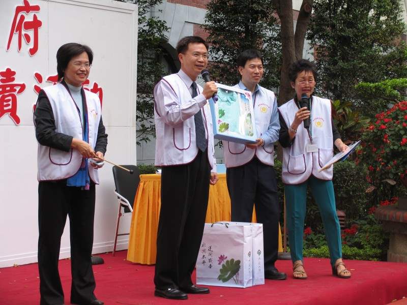 公共事務室指出,「總統府歲末慈善義賣活動」於下午2時30分,由總統府合唱團、太極拳等社團的表演拉開序幕。這次由同仁所捐贈的義賣品總共有435件,其中也有總統、副總統提供的義賣品,總統的法蘭瓷餐具組、副總統的版畫及水蓮裝等,都是同仁競價中的最愛。另外,總統府各單位正副主管也提供義賣品,同列精選競價,這些精選品項在短短十幾分鐘內,就被標購一空。隨後開始各攤位的義賣,只見大家專心地挑撿寶貝,使義賣所得很快就達到14萬7千餘元的目標,同仁的愛心表現,頓時讓南苑更溫暖而亮麗了起來。