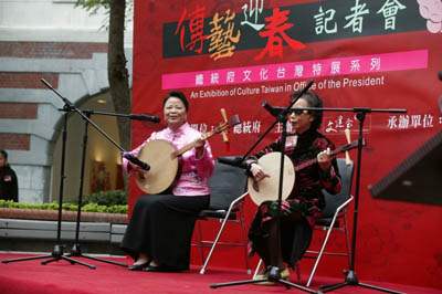 此次主辦「總統府文化台灣特展」,國立傳統藝術中心特別將台灣傳統藝術與年節吉慶結合呈現,別具創意與巧思,使參觀的民眾有如置身在動態的傳統藝術櫥窗,分享喜慶吉祥的氣氛,並體驗先民所累積的生活智慧與傳統藝術。將傳統藝術融入生活、提昇品味及激發興趣,進而發展台灣文化中獨特的生活美學,是總統府文化系列活動的要旨,期望全國民眾一起走進台灣傳統藝術的殿堂,在總統府走春中體驗自身傳統藝術的韻、巧、美,共享文化藝術的喜悅與驕傲。最後,阿扁要祝福在場各位嘉賓、先進及朋友,新春快樂、萬事如意。