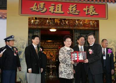 呂副總統秀蓮女士今天上午出席台北市松山慈祐宮年終慈善活動,親自見證慈祐宮捐贈救護車及醫療器材予台北市政府消防局、三軍總醫院、台北市立聯合醫院、博仁醫院及國軍松山醫院等相關單位。儀式正式開始前,副總統並上香祈福,祈求2006年國泰民安、風調雨順。