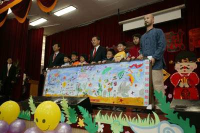阿扁也要鼓勵貴家所有的小朋友,要努力克服客觀環境的障礙及自己的弱點,勇敢追求生命的冠冕。最近當紅的兒童電影「納尼亞傳奇」,講述的是第二次世界大戰期間,四個從倫敦到鄉下躲避戰亂的孩子,在一棟古宅中發現一個神奇衣櫃,從此進入一個「納尼亞王國」,在一連串的冒險危難當中,這四個孩子認識到自身的缺點與軟弱,但在獅王「亞斯蘭」的引領下,他們逐漸克服自己的軟弱與恐懼,最後成為「納尼亞王國」的國王與皇后。阿扁相信,只要各位小朋友勇於踏出每一個腳步,不在困難當頭後退,最終一定會像「納尼亞傳奇」裡的四個孩子一樣,得到生命的冠冕。