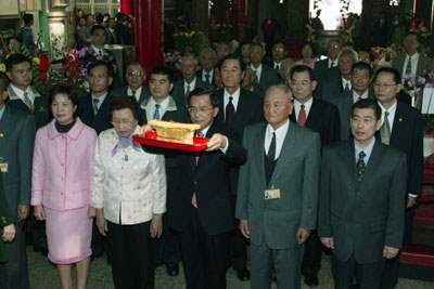 陳總統水扁先生今天中午在台南縣麻豆國中與鄉親歡聚新年團圓餐敘,並於餐敘前致詞。