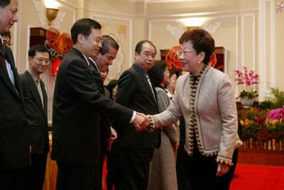 陳總統水扁先生暨呂副總統秀蓮女士今天上午參加總統府95年新春團拜茶會。