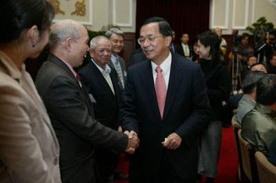 今天阿扁非常榮幸能與國內發明家前輩們見面,過去政府對發明界或許做得不夠多,但是政府一直希望能努力想把它做好,例如智慧財產權的保護、科學園區的開闢、科技產業的獎勵,以及科技人才的培育等。至於勞苦功高的發明家對於個人研發或產品化投資的各種項目上,如果認為政府做的仍有欠缺,請大家隨時不吝給予指教,讓我們有機會為發明界提供更周延的服務。
