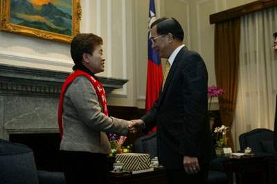 第20屆志願服務楷模金駝獎得獎人,包括:戴蕭錦新、蘇蔡彩秋、賴美智、邱李雪蘭、蘇美美、陳曼珍、范素貞、劉王阿雪、林炳辰、林吳寶秀、林秀容、萬昭麗、鄭淑芳、吳陳鳳蘭,上午由全國志願服務協會理事長王信昌及台北市志願服務協會理事長黃金德率領、內政部次長顏萬進陪同,前來總統府接受總統道賀,總統府副秘書長卓榮泰也在座。