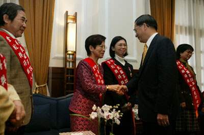 陳總統水扁先生今天上午接見第20屆志願服務楷模金駝獎得獎人,代表政府及全體國人對得獎人多年的奉獻與卓越表現,表達感謝與敬意。