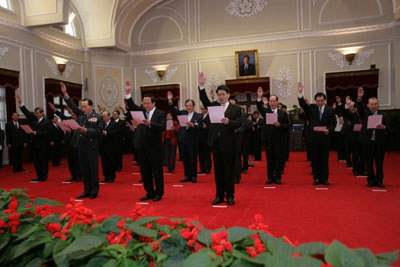 陳總統水扁先生今天上午在總統府主持新任政務副首長宣誓典禮。