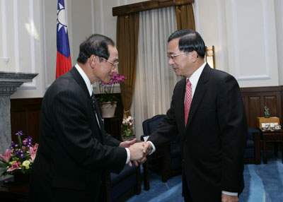 陳總統水扁先生今天上午接見第四屆「台灣金根獎」得獎企業代表,對主辦單位舉辦該獎選拔的用心以及各得獎企業長年對台灣的支持與愛護,表達感謝與肯定之意。