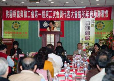 呂副總統秀蓮女士今天上午參加桃園縣職業總工會第一屆第二次會員代表大會暨成立週年慶活動,除向與會代表拜年外,並致詞。
