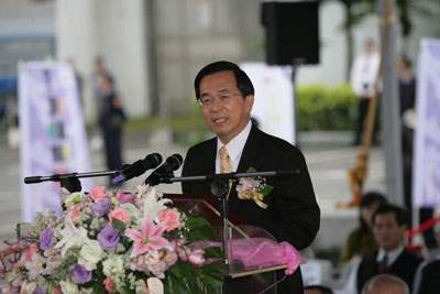 今天阿扁非常高興應邀參加「2006亞洲盃國際壁球錦標賽」開幕典禮,首先謹代表台灣政府及二千三百萬人民,歡迎來自亞洲十二個國家,總共一百多位選手、領隊和裁判來台參加首次由台灣主辦、規模最大的國際性壁球比賽,藉此機會,也要特別感謝主辦單位全體工作伙伴的辛勞付出,讓這次的賽事能夠順利圓滿的展開。