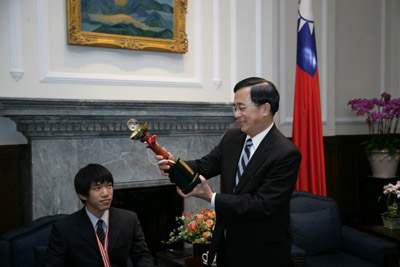 我國參加2005年國際國中生科學奧林匹亞競賽得獎學生:高雄市立高雄高級中學葉育奇、簡晉佑、台北市立敦化國民中學許倫愷、彰化縣私立精誠高級中學國中部王建詒、彰化縣立陽明國民中學施伯彥、楊鎮宇,下午由指導教授及家長、教育部次長呂木琳陪同,前來總統府接受總統道賀。