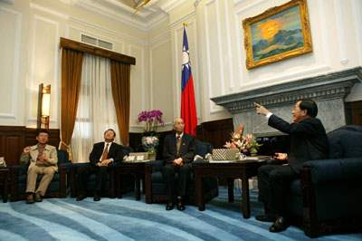 隨後,總統除聆聽訪賓對建築的看法之外,也和三位建築師分享將台灣意象的空間元素帶入總統府會客室,進行空間解嚴的感想與心得。