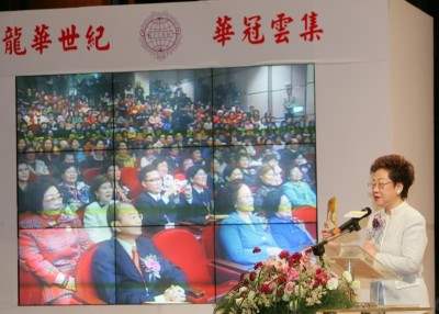 副總統也再度展示圖表說明女性從事政治的成果指出,全世界192個國家中共有12位女性元首,9位女性副元首,台灣在2000年後,陳總統提倡兩性共治時代來臨,要求當時行政院唐飛院長於行政院各部會中任命4分之1女性閣員,在場僑務委員會張富美委員長即是其中一位,且自2000年到職至今,一直都在為僑務及僑民同胞服務奉獻,精神令人感動。此外,中央與地方政府部門女性從政比率亦不少,例如行政院各部會主管,即有8位女性,2000年時為9位,雖少了1位,但行政院副院長連續兩任則為女性,分別為葉前副院長菊蘭及現任蔡副院長英文,縣市長方面,三合一選舉前有3位女性縣市長,現在則有兩位,分別為雲林縣及嘉義縣,縣市議員部份則在三合一選舉後產生233位女性縣市議員,成果可觀,這些經由民意選舉出來的女性民意代表,日益增加,所代表的意義自不在話下,具有相當鼓勵作用。