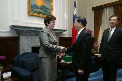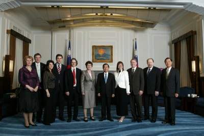 冰島執政黨獨立黨國會黨團主席絲凡思朵蒂偕該國國會漁業環境兩委員會副主席顧納昇(Kristinn H.Gunnarsson)、總務委員會主席班尼迪克森(Bjarni Benediktsson)、衛生委員會主席約翰妮絲朵蒂(Asta R. Johannesdottir)等一行,下午由外交部次長黃瀧元陪同前來總統府晉見總統,總統府秘書長陳唐山也在座。