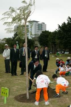 陳總統水扁先生今天上午前往國立臺灣大學,參加95年植樹節中樞紀念植樹活動,除了應邀致詞,也親植象徵台灣活力的鳳凰木一株作為紀念。