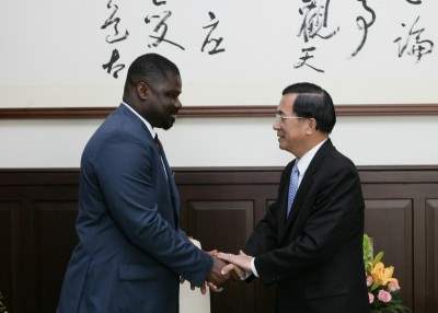 甘比亞共和國外交部長巴久,上午由外交部次長黃瀧元陪同,前來晉見總統。總統府秘書長陳唐山也在座。