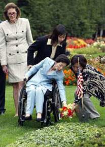 隨後總統夫人並前往位於圖書館旁草地上的羅斯福總統與愛蓮娜夫人墓前獻花致意,並參觀了他們的故居。