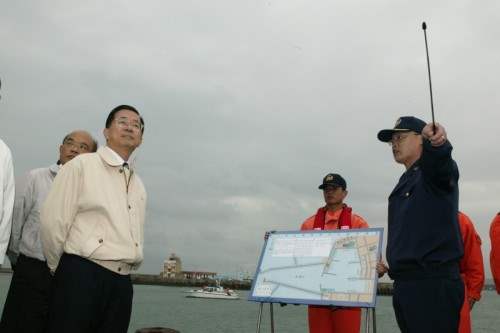 當然,阿扁也了解台灣海洋國土的遼闊,以及海岸線的綿長,要把海巡工作做到滴水不漏,這是非常艱鉅的任務與挑戰。除了人員的補充與訓練外,更必須借助各種現代化的船隻艦艇與高科技的裝備。對此阿扁曾再三的承諾,政府將以最大的努力,儘量寬籌預算,積極擴充海巡執法的能量,建立執法的威信,不但要有效的打擊犯罪,更要進一步預先嚇阻犯罪。投資海巡就等於是投資治安、投資安全與投資幸福,政府將持續的強化海巡各項整備工作,讓這一支維護國家安全與社會治安的生力軍,能夠不斷的成長茁壯,成為捍衛台灣海洋國土最堅實的屏障。