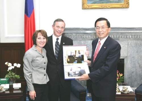加拿大國會議員訪問團由團長眾議院議員歐文(Stephen Owen)領隊,我國外交部次長黃瀧元陪同前來總統府晉見總統,總統府秘書長陳唐山也在座。