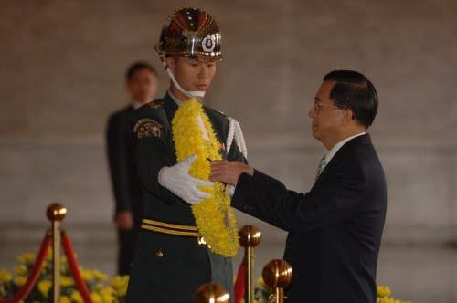 上午十時正,在崇戎樂聲中,總統由總統府秘書長陳唐山陪同抵達忠烈祠。