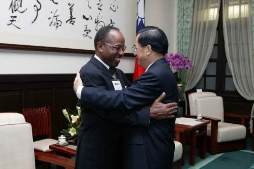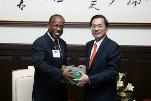 聖文森副總理兼外交部長史垂克夫婦上午由外交部次長黃瀧元陪同,前來總統府晉見總統,總統府秘書長陳唐山也在座。