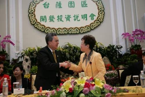副總統指出,總統去年訪問中美洲友邦時曾提出「榮邦計劃」,政府除設有開發基金,不僅提供融資優惠,更有合作投資計劃,而此規劃的原始點即是「台薩園區」的開發。副總統表示,「台薩園區」開發刻正積極進行,其中薩爾瓦多在該國機場附近Comalapa地區提撥約114公頃土地,經過薩卡總統同意無償提供台灣開發使用30年,如此良好機會,希望台灣產業界能善加利用,因為,該地區緊鄰薩國國際機場,且薩國堪稱中美洲轉運站,該片土地珍貴、平坦又乾淨,她在去年3月中旬即曾率團親自視察過,留下深刻印象。