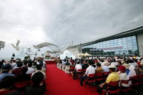 最後,要再次謝謝大家的光臨,期盼海生館經驗能夠給予台灣更多啟發與信心,而最新的「世界水域館」能夠成為台灣熱門的觀光景點,提供民眾多一個寓教於樂的休閒去處。誠如剛才李董事長所說的,這是非常成功的BOT案,BOT絕對不是過街老鼠,我記得全國第一件的BOT案,也是在本人擔任台北市市長期間所推動的,就是現在的台北101大樓,當時稱為台北國際金融大樓,今天看到海生館第三展示館的開幕,我們也感到與有榮焉,今天天氣特別好,不是台灣各地都好,只有這裡特別好,因為阿扁一路從台北專程來到這個地方,沿途都在下雨,下到枋寮,只有車城這裡看到陽光,真的非常高興,再次恭喜大家,祝福各位。