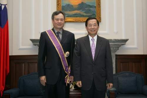 陳總統水扁先生今天下午頒授2006年第78屆美國影藝學院奧斯卡獎最佳導演李安「二等景星」勳章,以表彰他為國爭光及在電影文化的傑出成就。