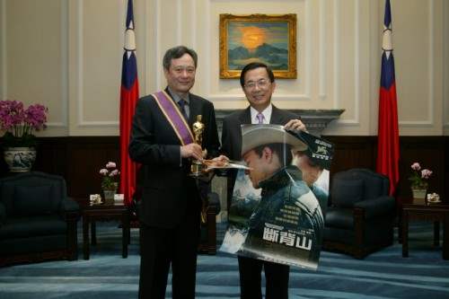總統則表示,上次摸到奧斯卡「最佳外語片」的小金人,而今天再有機會摸到「最佳導演」的小金人,他感到非常興奮,並推崇李安導演不只是台灣之光,也是華人之光,是亞洲、非白人共同的驕傲,這項了不起的成就並不能完全歸功於台灣的教育,更重要的是李安導演父母的卓越教導,才能培養出世界級的導演。