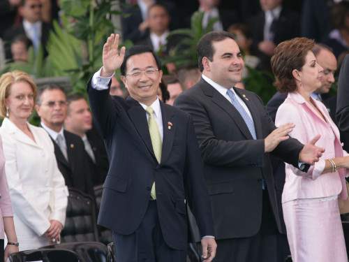 阿里亞斯總統就職典禮上午在該國國家體育場舉行,陳總統在司儀唱名下進場,唱序在全部元首團中排名第三。在阿里亞斯總統進場期間,陳總統除與參加就職大典的各國元首握手寒暄之外,也主動走向擔任布希總統特使的美國第一夫人蘿拉女士(Laura Bush)親切問候。整個就職大典進行約兩個小時,陳總統在場親自見證了哥國新舊任總統交接過程。