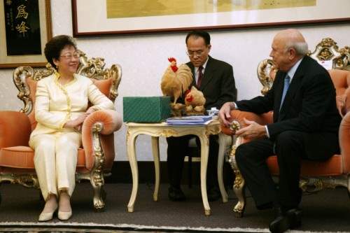 前南非總統戴克拉克上午前來總統府與副總統會晤,南非駐台代表Petrus Meyer也在座。