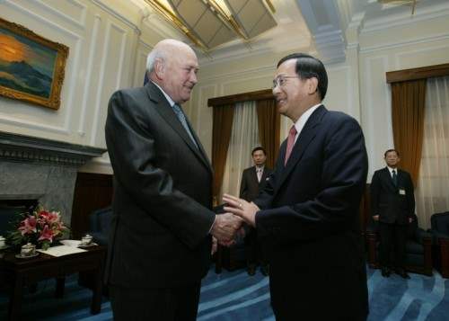總統表示,戴克拉克前總統此行是第四度來台訪問,首次來訪是1985年10月以教育部長的身分來台,第二次是1991年以南非總統的身分前來我國進行正式國是訪問,第三次是2001年與數位諾貝爾和平獎得主受邀來台參加由呂副總統所舉辦的「世界和平、台灣發聲活動」,此次則是應台大施明德講座之邀來台參與有關和解議題的對話。而戴克拉克前總統對台灣非常友好,長期支持台灣,除了在2001年8月間公開指出台灣在人權、民主與經濟上的卓越成就,應獲得國際社會的承認,台灣無法獲得國際社會的承認,是強權之下的犧牲品之外,更公開呼籲台海爭端必須透過對話和平解決,不論內容與結果如何,都不能違背台灣民主、人權及經濟的成果。