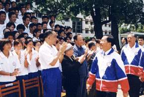 拓展國際空間,參加國際性賽會及提昇國家運動競爭力,向為政府施政重點之一。其中,提昇運動競爭力最重要的指標,就是要有一個專屬的運動訓練中心。阿扁上次為參加東亞運代表團授旗時曾說,要協助解決國訓中心用地的問題,目前行政院已正式核定將左營勝利南、北營區中三七.七三公頃的土地撥給體委會,供成立國家級運動訓練中心之用,相信未來在這個基地,將展現嶄新風貌,訓練成績,當能更加提升。