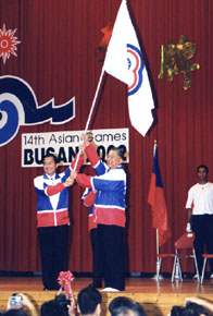 我國參加第十四屆亞洲運動會代表團,即將出發赴韓國釜山,與來自四十三個國家地區約一萬餘名的運動菁英同場競技,阿扁應邀為代表團授旗,與各位見面,內心感到十分高興。首先預祝參賽的選手、教練及全體隊職員平安、順利,締造佳績,為國爭光。同時對於認真參與策劃及執行組訓工作的行政院體育委員會、中華奧會、國家運動選手訓練中心,及各單項運動協會工作同仁,表達個人的肯定與嘉勉之意。