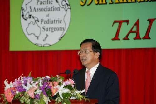 今天,本人非常高興能夠受邀參加「第39屆太平洋小兒外科醫學會年會」台灣之夜晚宴,首先謹代表台灣政府及二千三百萬人民,誠摯歡迎來自十八個國家243位小兒外科的學者專家及醫界領袖,參與這個重要的國際醫學盛會。確信此次大會對促進世界小兒外科的研究、醫療與教育水準的提升,將有極大的影響與貢獻。